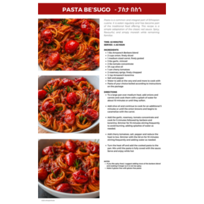 - Pasta be’Sugo – Ethiopian Berbere Spiced Pasta