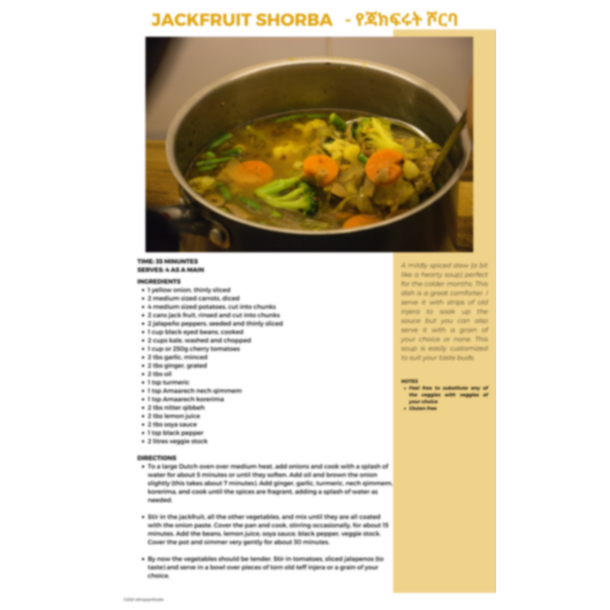 - Ye’Jackfruit Shorba – A hearty Jackfruit, Bean, and Vegetable Soup